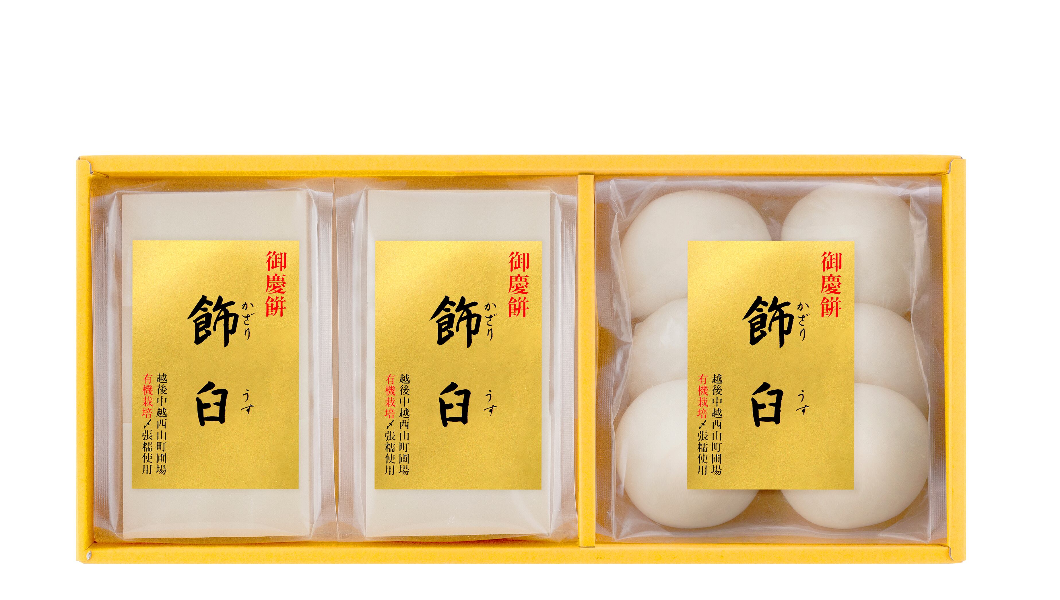 越後 有機栽培 水稲もちしめはり「御慶餅 飾臼」ギフトセットC(切餅2袋+丸餅1袋)
